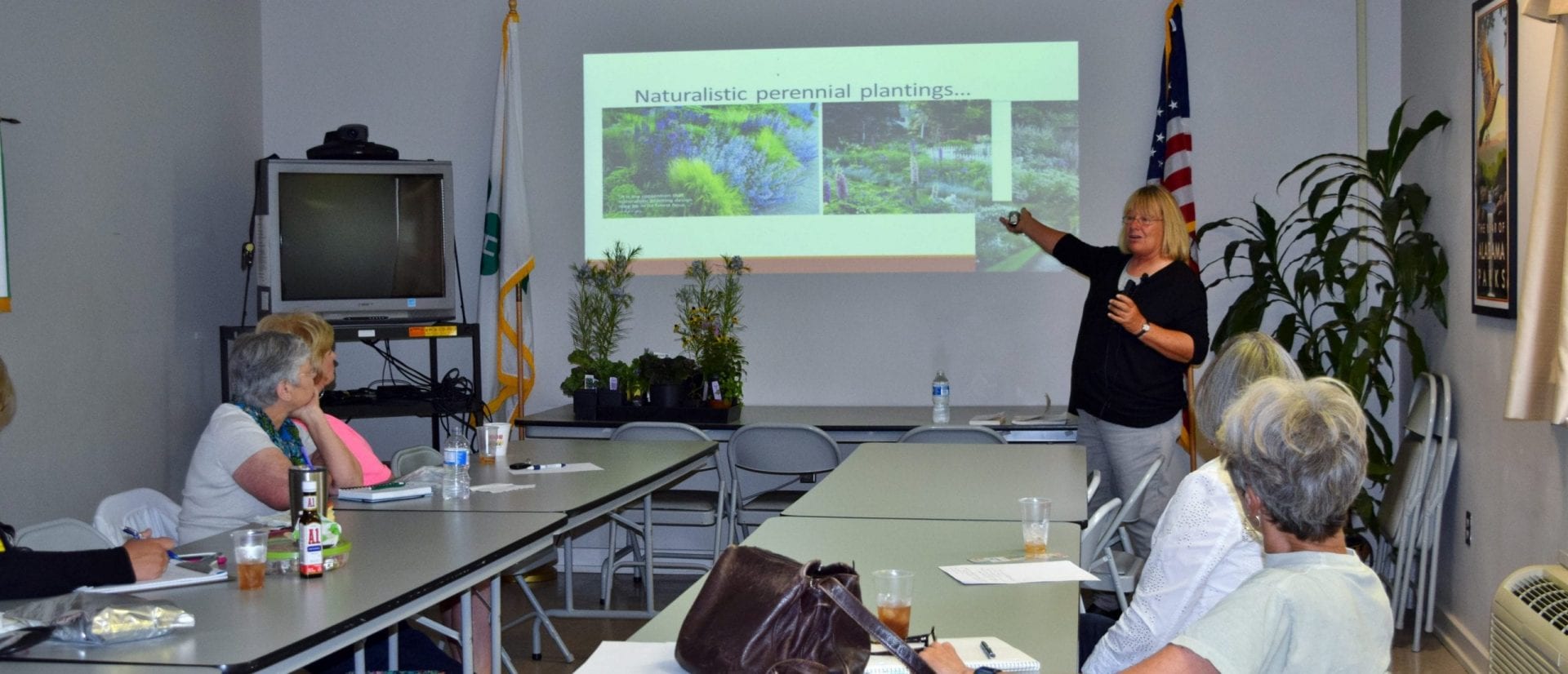 Rick Cybulsky, Jefferson County Advanced MG presented an informative program on how to use and care for perennials. He told us that most perennials give 4 to 6 weeks of color but this can be extended by deadheading. He reminded us to cut back in fall and prune at appropriate times for the plant. Dividing when growth slows is important to plant heath.
