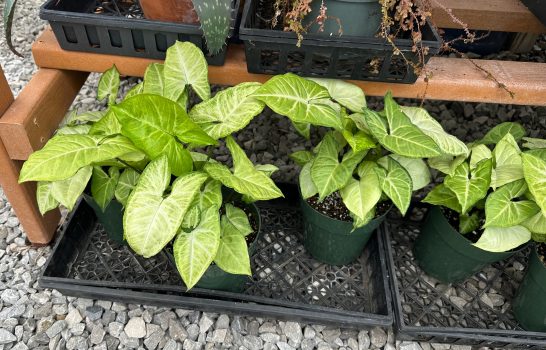Aloe Vera, $8. Who doesn’t want a perky Aloe Vera to brighten up a December, or Jan, Feb, March… on your window sill? Let dry out between waterings. Aloe Vera, Surprisingly, appreciates not having blazing sun on it’s leaves.Plectranthus Hybrid, $10. Smells wonderful! This plant is related to Cuban Oregano with smaller, cute button leaves. Give it a bit of a prune and you’ll have cuttings to make more! Happy in most any window. Let dry out a bit between waterings.You need this stunning houseplant to brighten up your home this winter! Clivia, aka bush lily is a member of the amaryllis family. Pictured here in a two gallon pot $35Wandering Dude, Tradescantia zebrina Ready to be hung up and admired from above. You could also remove the hanger, put it on a stand, and watch as these beautiful green/purple/silvery leaves cascade down. $15Schefflera, Heptapleurum arboricola Another big and Beautiful Schefflera. $25Fiddle Leaf Fig, Ficus lyrata We have a couple of these little tropical trees that can grow as large as you want to inside of your home. $15Flapjack, Kalanchoe, Stonecrop family (Crassulaceae) $12 for the big ones and $5 for the little one.Mother of Thousands, $6. She’ll soon be giving you tons of babies along her leaf edges. So fun to watch and propagate. Let dry out a bit between waterings and keep out of direct sun if you want to maintain a lush green leaf.Angel Wing Begonia, Begonia ‘Argenteo-guttata. With leaves this beautiful who needs flowers? $10Arrowhead, Syngonium podophyllum Grab one of these easy going perky plants before they’re gone! $8Zamioculcas zamiifolia, ZZ Raven, $8. Low maintenance, beautiful dark leafed ZZ.Plectranthus Hybrid, $8. Smells wonderful! This plant is related to Cuban Oregano with smaller, cute button leaves. Give it a bit of a prune and you’ll have cuttings to make more! Happy in most any window. Let dry out a bit between waterings.