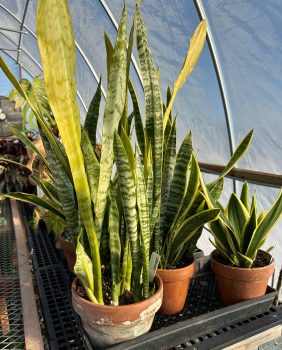 Check out the beautiful blooms on our Wax begonias! (Begonia semperflorens) $15 per plant.More beautiful begonia blooms! Star Begonia, $20 for large $15 medium.Everyone needs a Snake plant! Dracaena trifasciata formerly Sansevieria. $20 for large $15 for medium.Bird’s Nest Dracaena trifasciata ‘Hahnii’ $12$12 Possibly a Bird’s Nest Dracaena trifasciata ‘Hahnii’ that had higher light conditions than the one above.$15 Tahitian Bridal Veil Gibasis pellucida. Beautiful cascading plant with tiny white flowers.Aloe Vera, $8. Who doesn’t want a perky Aloe Vera to brighten up the winter on your window sill? Let dry out between waterings. Aloe Vera, Surprisingly, appreciates not having blazing sun on it’s leaves.Wandering Dude, Tradescantia zebrina Ready to be hung up and admired from above. You could also remove the hanger, put it on a stand, and watch as these beautiful green/purple/silvery leaves cascade down. $15Schefflera, Heptapleurum arboricola Another big and Beautiful Schefflera. $25Fiddle Leaf Fig, Ficus lyrata We have a couple of these little tropical trees that can grow as large as you want to inside of your home. $15Flapjack, Kalanchoe, Stonecrop family (Crassulaceae) $10 for the larger one, $5 for the little ones.Unless you have an elephant in your home, these plants will be happy campers! $6 African Elephant Bush Portulacaria afraMother of Thousands, $6. She’ll soon be giving you tons of babies along her leaf edges. So fun to watch and propagate. Let dry out a bit between waterings and keep out of direct sun if you want to maintain a lush green leaf.Angel Wing Begonia, Begonia ‘Argenteo-guttata. With leaves this beautiful who needs flowers? $10Arrowhead, Syngonium podophyllum Grab one of these easy going perky plants before they’re gone! $8Zamioculcas zamiifolia, ZZ Raven, $8. Low maintenance, beautiful dark leafed ZZ.Plectranthus Hybrid, $8. Smells wonderful! This plant is related to Cuban Oregano with smaller, cute button leaves. Give it a bit of a prune and you’ll have cuttings to make more! Happy in most any window. Let dry out a bit between waterings.