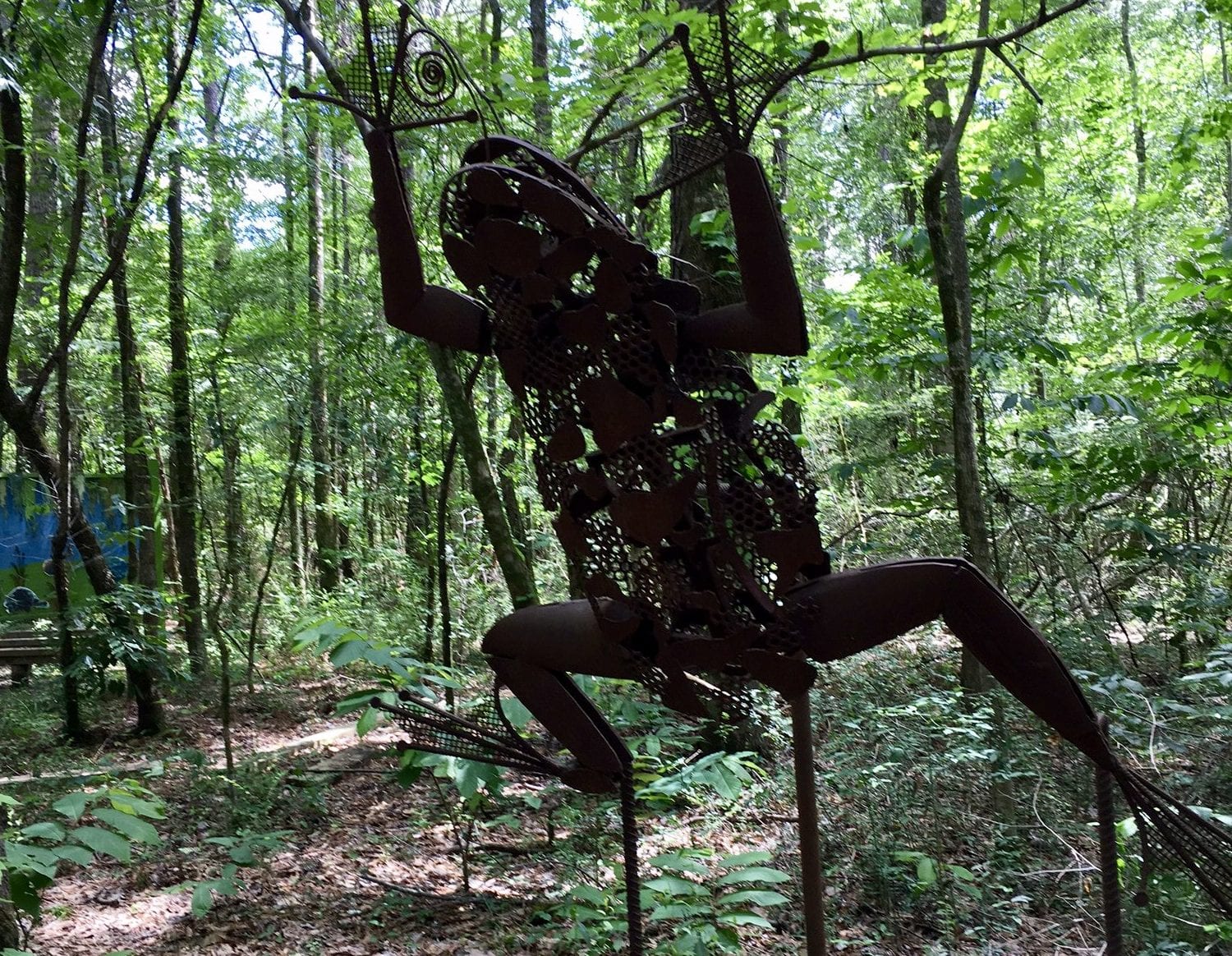 The swamp is used by UM for hands on science classes. It also features abstract sculptures of a frog, a heron and a dragonfly made from recycled steel by students in UM art classes.