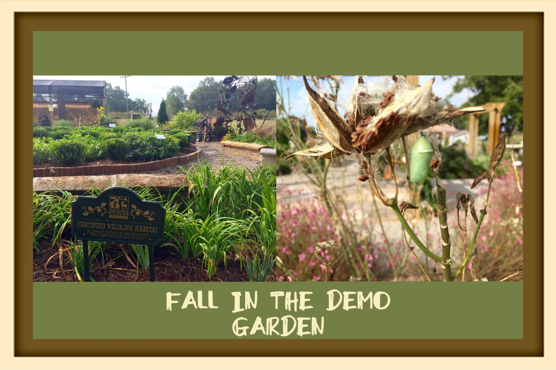 Autumn is a beautiful time to tour our Demonstration Garden. The garden is located on the grounds of the Chilton Research and Extension Center which is located on 120 County Road 756, Clanton, AL 35046. The butterfly garden is really doing it’s job, attracting butterflies! The herb bed is also a magnet to the butterflies. There’s a shade garden with a small table and chairs and a pergola with a comfortable swing. So bring a book and a sack lunch and enjoy the garden during this pleasant time of year.
