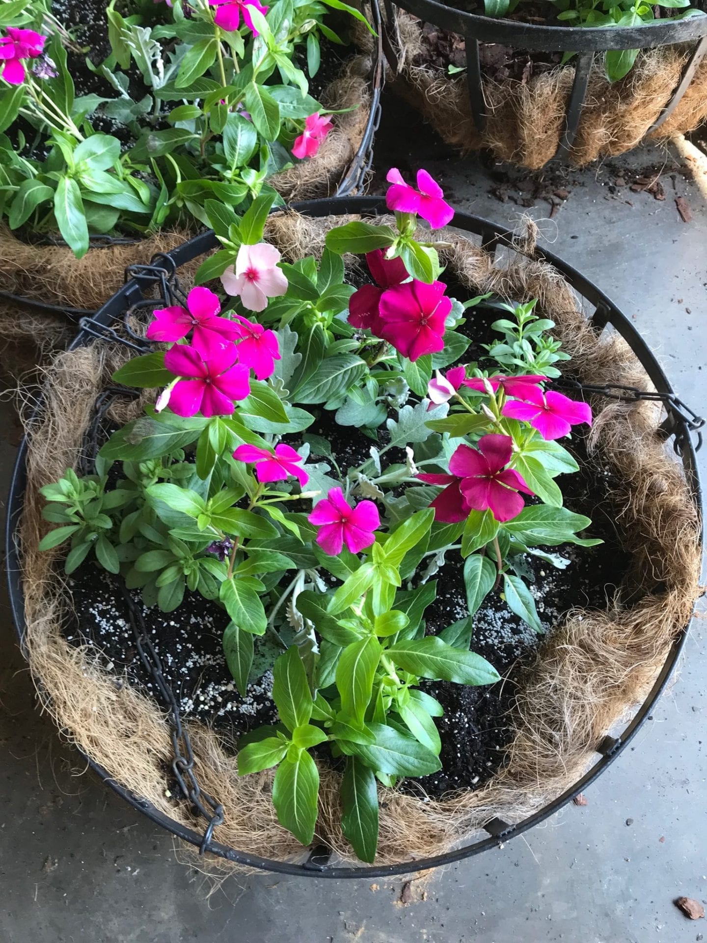 Master Gardeners planted 55 baskets and 22 planters for the City of Jemison on Thursday, May 10. Over the course of 2 days, baskets were lined and plant material was divided along with the planting of the flowers.